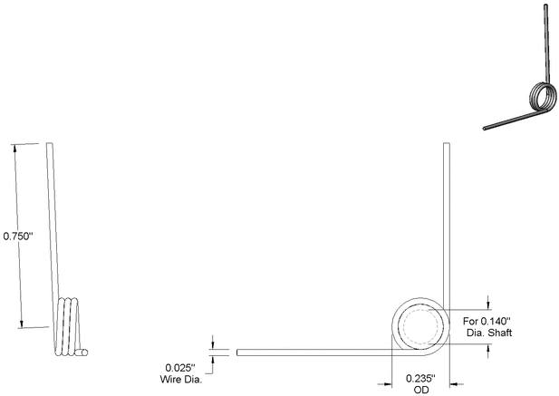 0.235" OD, .025" Wire Torsion Spring выглядит так: