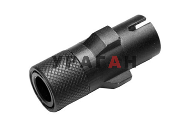 Метталлический адептер для установки глишителя на МП5 (Classic Army A035m). Сделан в виде пламегаса. Причина продажи: на встаёт на Маруйский МП5 (на Маруйском на выходе резьба, а на этом адаптере её нет). В Урагане такой стоит 700 рублей. Отдам, ну скажем, за 500. Вот такой: