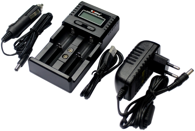 Заряжает Ni-MH (AAA, AA, C, Крона), Li-Ion и LiFePo4 (14500, 16340, 18650, 26650).