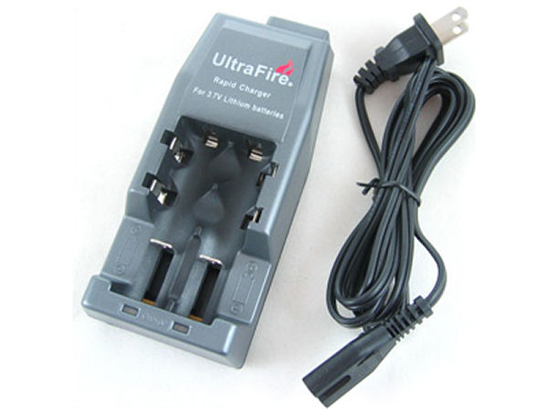 Зарядное устройство Ultrafire WF-139. Имеет два раздельных канала заряда по 450 mA каждый, микропроцессор опрашивает каждую батарею 3 раза в секунду (и поэтому раз в секунду моргает диодом - это нормально). Окончание зарядки по достижении 4.17-4.23V