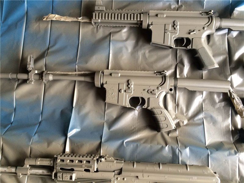 Придерживаем отвёрткой трафарет, если не прижать, то не получится чёткая грань. На фото можно увидеть, как используются квадратики приклеенные на свободную механу ( в виде зубной щётки), ими фиксируем трафарет для большей надёжности, что бы не сдувало его. Вырезаем именно квадратики, что бы не портило вид камо, у нас же пиксельный камуфляж. ну и итог ну как то так, надеюсь парни скинут фотки калаша, я тогда его добавлю сюда в итоги, а то его нету, что печалит сильно.С покраской самого привода все намного сложнее так как много не ровных выступающих частей. Некоторые части привода получались смазанными, но это сильно картину не испортило. После всей окраски все детали обработались матовым лаком. Сравнивали с лаком и без лака, отличия очень трудно отличить по цвету, единственное только поверхность становится более однородной.