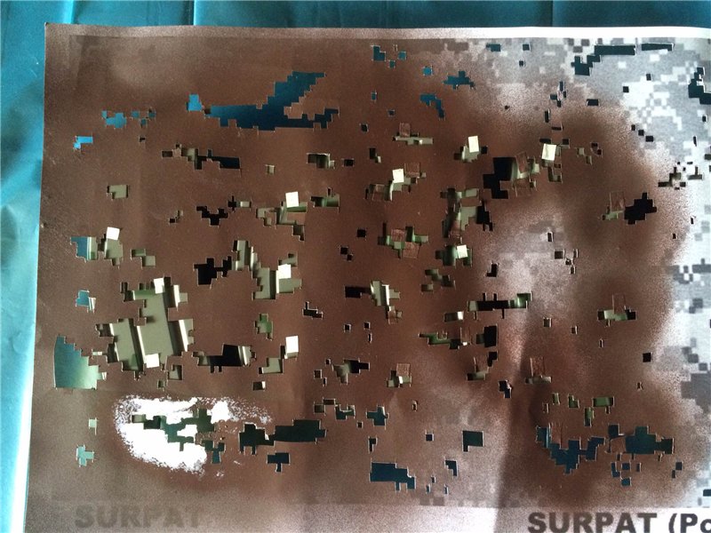 Хочу сказать, что надо в интернете найти фотографию (цветовую схему сурпата, но можно найти и марпат, по скольку они одинаковы по расположению пикселей). Далее вы идёте 2мя путями: 1. Вы убираете все цвета кроме допустим зелёного и распечатываете лист только с зелёными пятнами, далее проделываете тоже самое с цветами чёрным и коричневым. У вас получаются белые листы но с разными цветовыми пятнами, которые вы в последствии вырезаете и используете как маски для покраски. 2. вы просто не заморачиваясь распечатываете одинаковые листы и потом просто на разных листах вырезаете по одному цвету, но так у вас большой расход краски будет.