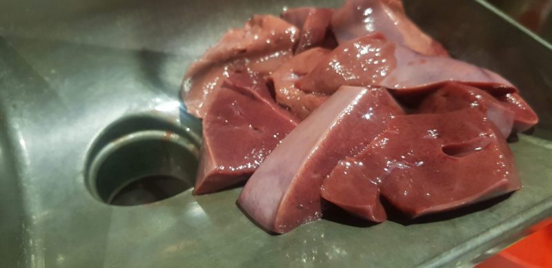 Для пирога: 600 гр. говяжей печени, 3 яйца, 1 стакан молока, 4 стол. ложки муки, 4 столовых ложки подсолнечного масла (с ним легче коржи от сковороды отлипают).