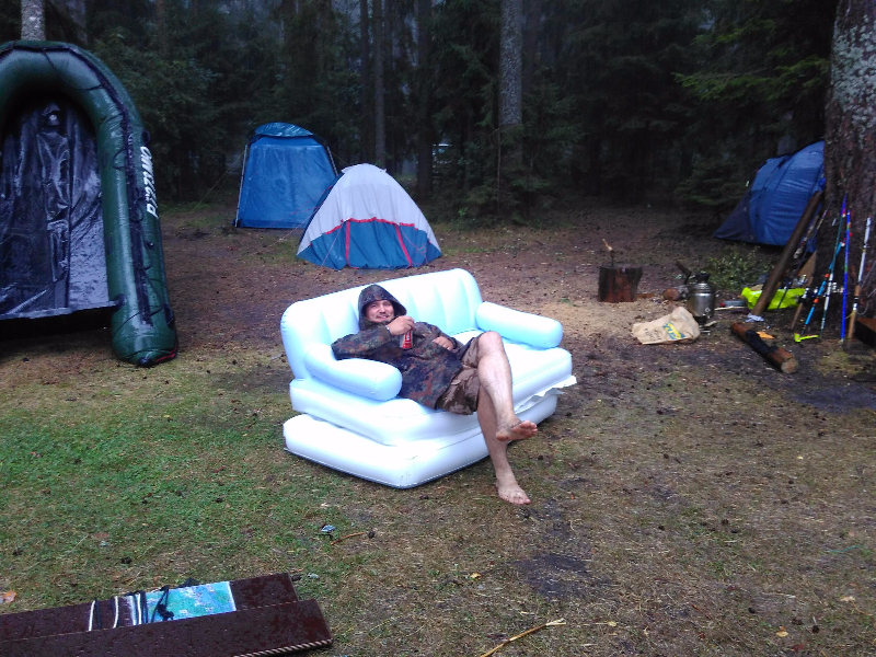 Разбирали и мыли лодку перед отъездом, ливанул дождь сильный и ветер, к нам прибило этот диван, мы стали фо каться на нем, потом отдали хозяевам.
