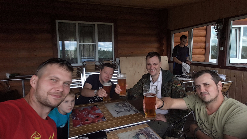 На базе пьём пиво "Поручик Ржевский", я это пиво знаю давно. Оно имеет сладковатый вкус, очень необычно для пива, но вкусно.