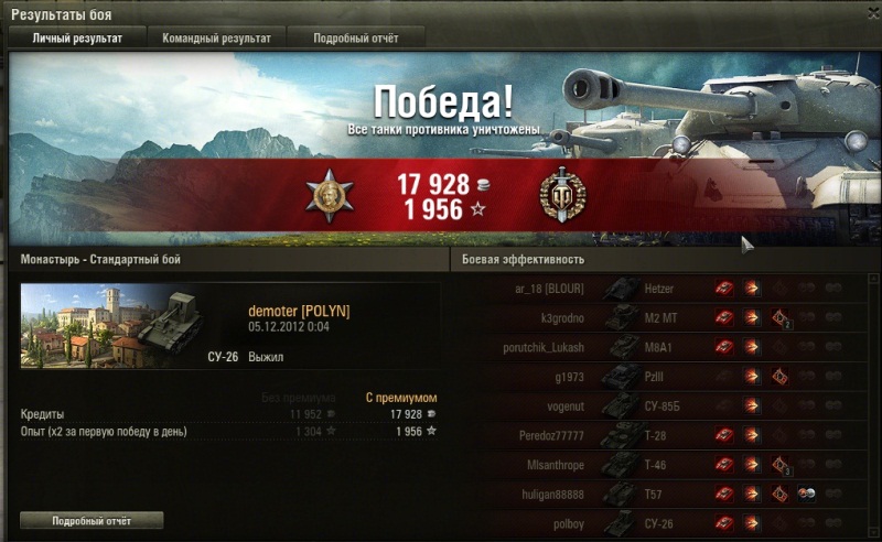мля, не могу сделать скрин, но фича в том, что я на арте вытащил бой, завалил 8 жмуров, получил ВОИНА!!!! наконец то мать его!!!! и классность "М", команда была дно полное, наши 2 арты не убили никого (су18), я был в центре рандома, красота короче)))