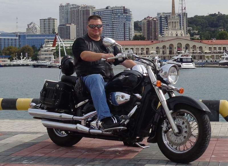 В августе прошлого года я наконец стал счастливым обладателем Suzuki Intruder 400 Classic. Взят был из Японии, с аукциона, с помощью людей, которые этим собственно и занимаются. Пробег 18500, состояние на 4,5 балла, год выпуска 2007. Пробег, разумеется, по Японии. Понятно, 400 кубов это не так много, но для первого мотоцикла ИМХО в самый раз. Максимальная скорость 130, комфортная крейсерская (когда не сдувает) - 100. Ну и самое главное, он безумно красивый. Классика, хром и черный цвет, ничего лишнего. Со временем Интрудер обзавелся кофрами из натуральной кожи модели "Айдахо" (магазин "Велотрек", ул. Транспортная, Сочи, 5000 руб.) и небольшим "батончиком" для инструмента :butcher: -дубинки :bita: -аптечки :rasta: той же марки из того же магазина. И вот вчера в М-Видео прикупил аудиосистему Wave Traveller, установил на байк, завтра буду испытывать на ходу (сегодня дождит, а оно не всепогодное :pardon: )