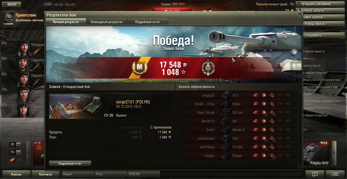 мля, не могу сделать скрин, но фича в том, что я на арте вытащил бой, завалил 8 жмуров, получил ВОИНА!!!! наконец то мать его!!!! и классность "М", команда была дно полное, наши 2 арты не убили никого (су18), я был в центре рандома, красота короче)))