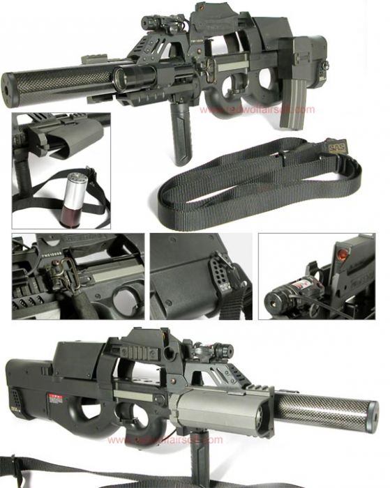 FN P90 — бельгийский пистолет-пулемёт, разработанный в 1986-1987 годах фирмой FN Herstal. Был разработан, в первую очередь, для танкистов и водителей боевых автомобилей. Имеет прогрессивный и удобный эргономичный дизайн. Специально для P90 был разработан патрон типа 5,7×28 мм SS190, являющийся уменьшенным патроном 5,56×45 мм НАТО и обладающий большей пробивной мощностью, чем другие пистолетные патроны. Пуля данного патрона развивает дульную скорость до 715 м/с и способна пробить кевларовый бронежилет с 200 метров.